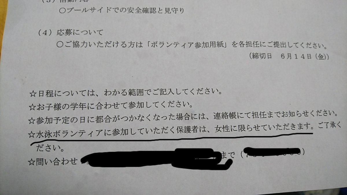 相模原市の小学校の プール監視員ボランティアは母親のみ応募可 は男性差別だ に対する反応 Togetter
